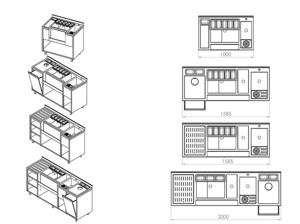 Stații de bar compacte, potrivite barurilor aflate în stadiul de concept sau proiect.